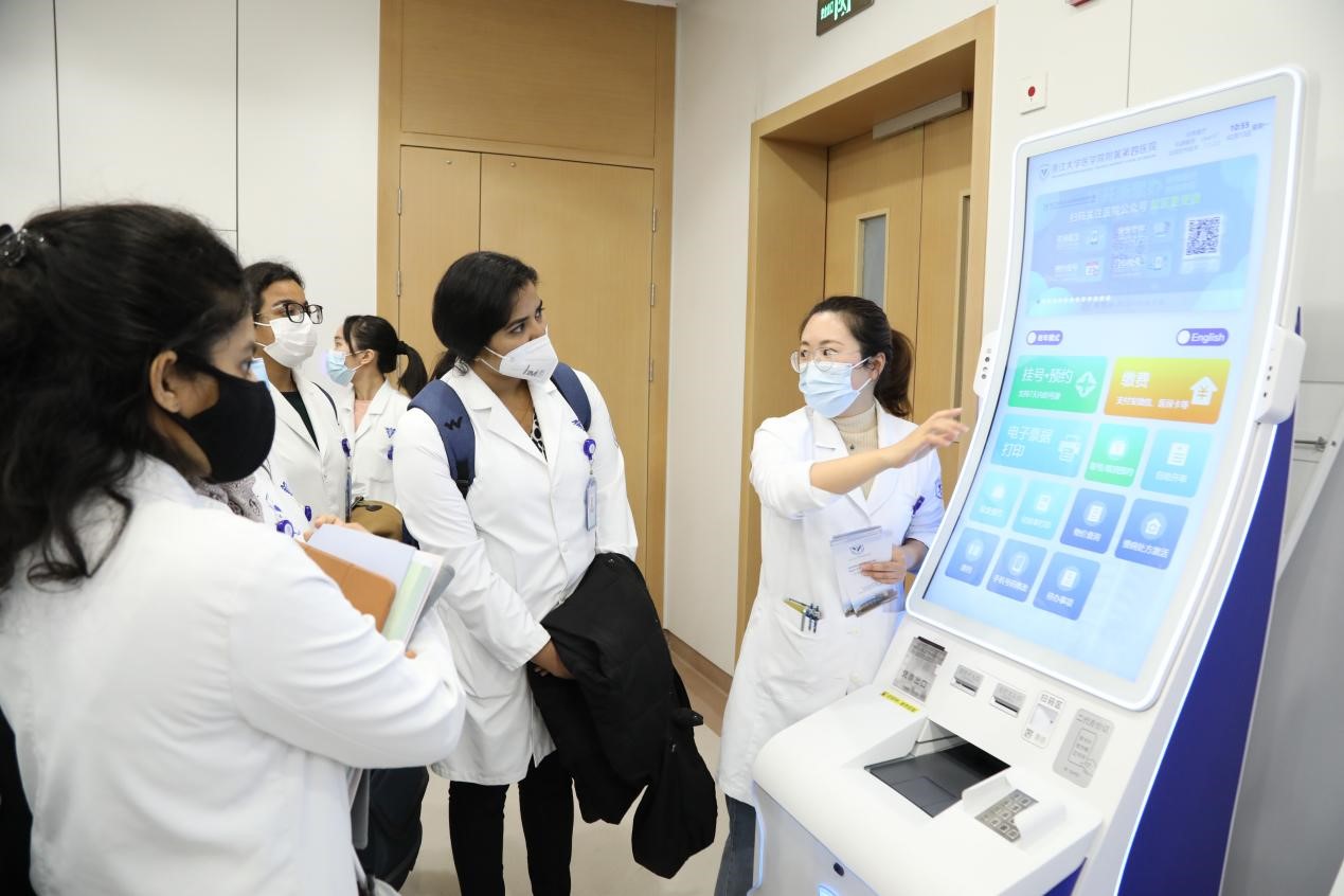 On Feb. 13, 19 international students from Malaysia, Indonesia, India, Singapore, Bahrain and Sri Lanka came to The Fourth Affiliated Hospital, Zhejiang University School of Medicine (ZJU4H) to carry out a visit and exchange activities organized by the Teaching Department, with a focus on the achievements of the information technology construction of ZJU4H,
