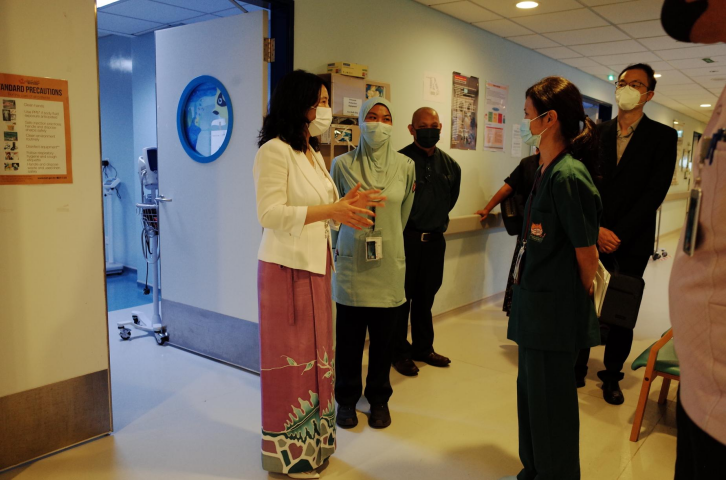 On the afternoon of the 20th, the delegation visited RIPAS Hospital in Brunei. Fathin Damit from the Ministry of Health of Brunei and Wu Jiong from the Chinese Embassy in Brunei also joined the visit. During the visit, Chen Weiying got a detailed understanding of clinical doctor training and medical licensing exams in Brunei. Both sides decided to initiate exchanges in medical interns and clinicians.