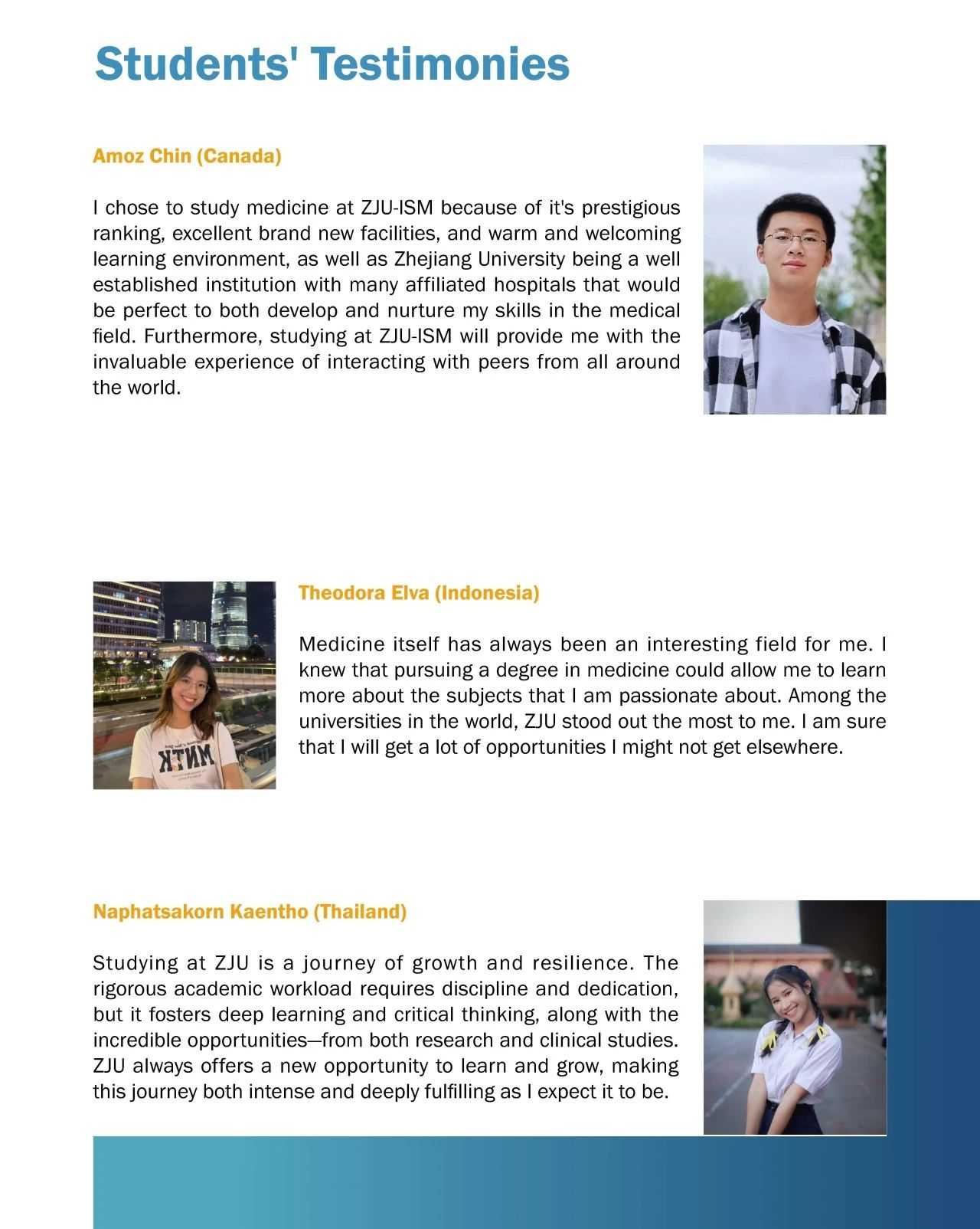 Join International School of Medicine, Zhejiang University (ZJU-ISM) in 2025 and embark on a journey toward academic excellence and global impact! As a hub of innovation and cultural exchange, ZJU-ISM offers world-class medical education, cutting-edge research opportunities, and a vibrant international community. We welcome outstanding students from around the globe to become part of our mission to advance healthcare and foster collaboration across borders. Your future in medicine starts here-apply now and shape the world with us!